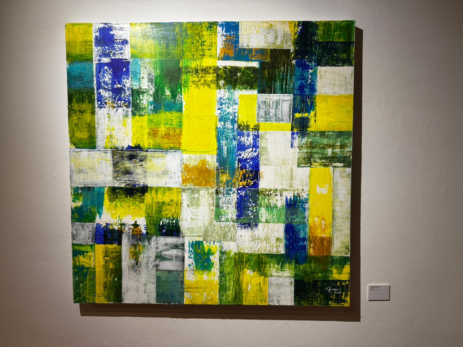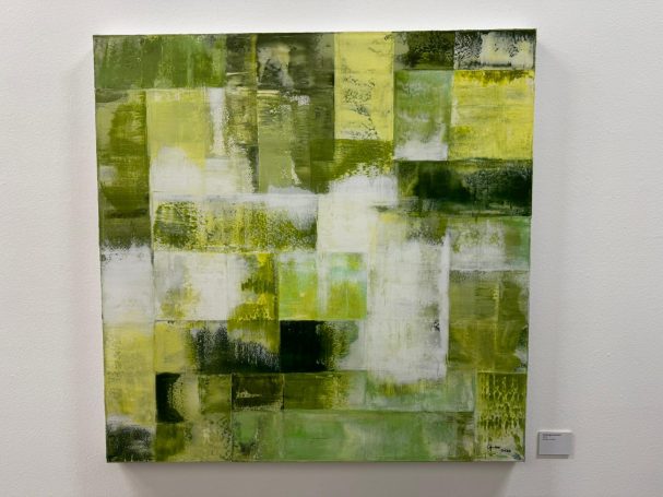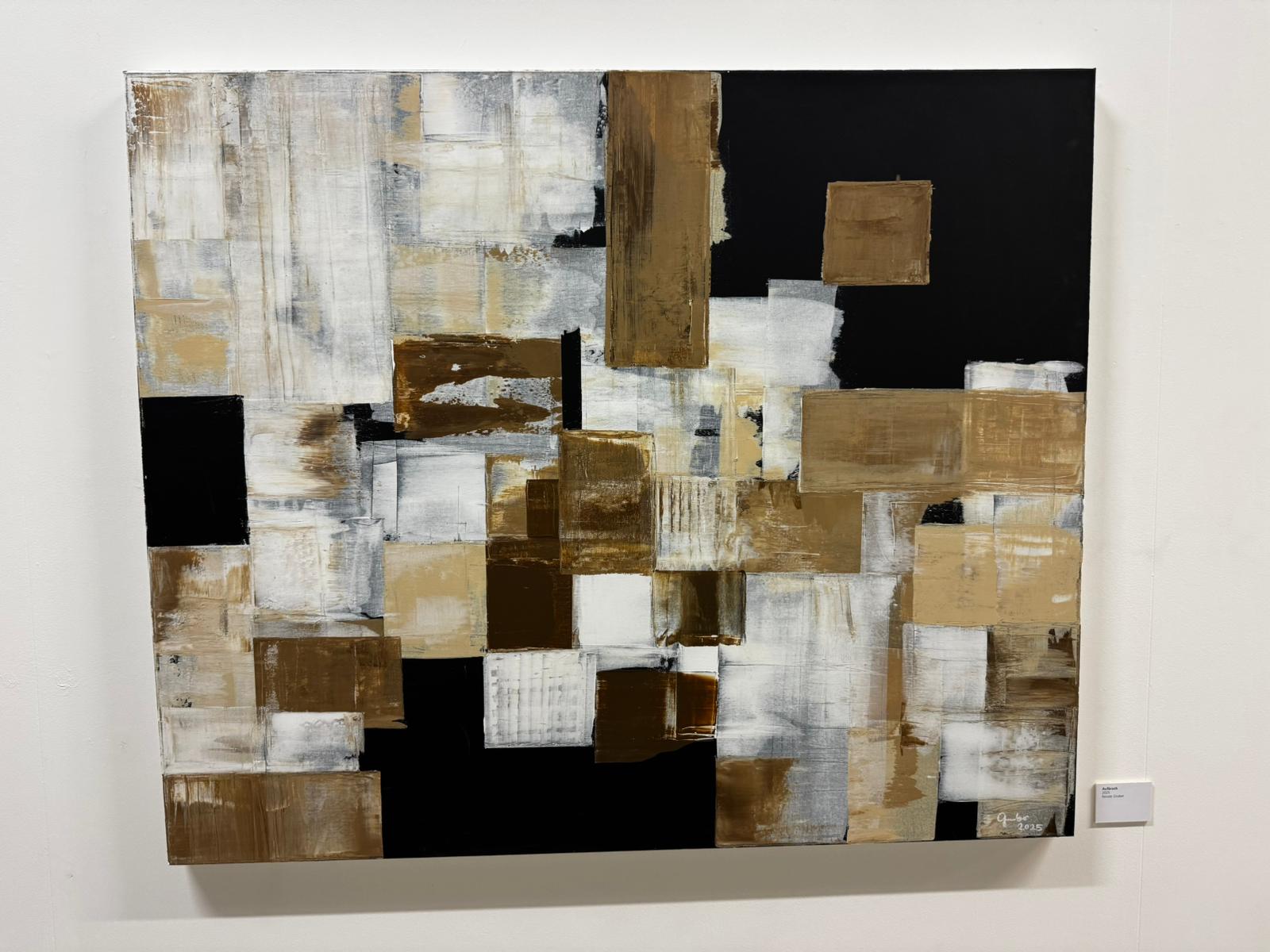 In einer zweiten Reihe löst sich die Arbeit vom Gegenständlichen: Farbige Quadrate, scheinbar frei gesetzt, verdichten sich zu dynamischen Kompositionen. Im Spannungsfeld von Ordnung und Farbe entstehen abstrakte Bildräume, die bewusst offen bleiben und zur eigenen Interpretation einladen.